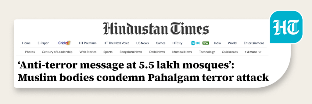 - High‑profile incidents such as the Pahalgam terror attack (April 2025) prompted widespread condemnation by Muslim leaders and organizations in India.