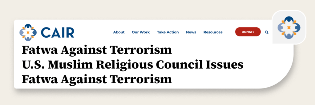 Council on American-Islamic Relations (CAIR) signs Fatwa against Terrorism