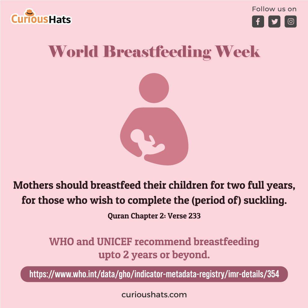 HomeEnglishGallery Gallery World Breastfeeding Week Share FacebookWhatsAppTelegramTwitterReddItCopy URL Download posters with Hadith and Quranic verses on World Breastfeeding Week. To download, long press the image and select “Download Image”. Share FacebookWhatsAppTelegramTwitterReddItCopy URL WHAT OTHERS ARE READING Father’s Day Gallery National Bird Day Gallery Non-Muslim Parents Gallery Most Popular Why Muslims eat non-vegetarian food? Common Questions Does the Quran command the Muslims to kill Hindus? Featured Why Muslims Do Not Eat “Prasada / Prasadam / Prasad”? Common Questions This historical miracle in the Quran will leave you speechless Religion & Culture